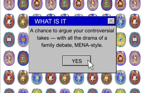 🧠 MENA DEBATE NIGHT 📅 7 AUG | 🕕 6:00PM | 📍407.208 Controversial takes. Family-level drama. But guess what? Baba’s not here to interrupt this time. Join us for MENA’s first ever Debate Night, a fun, laid back space to explore topics big or small. This is your chance to share your thoughts and hear others out. No group needed; come ready to reflect, challenge, and laugh. Just bring your hot takes and your sense of humour. Expect an open mic, debates, audience opinions and refreshments.